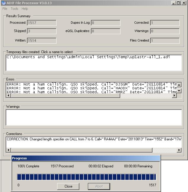 Для того, чтобы быть достаточно уверенным ,что ваш ADIF файл не содержит ошибок, рекомендуется его предварительно